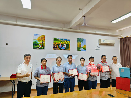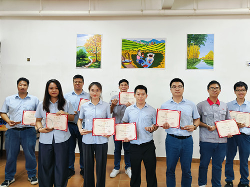 其次,由优秀班委代表——桂林3044永利曲轴有限公司质量科副科长邓钊平、优秀营员代表——桂林3044永利重工锻造有限公司技术科技术员谢羿吉,对整个学期中的学习收获与不足进行了总结发言。两位优秀代表讲到,在新锐营活动中不仅收获了各项专业的知识技能,也在各项活动中认识到团队合作的重要性,在今后的工作生活中将继续注重理论联系实际,把学到的知识技能应用锻炼在工作中,提高工作质量和效率。