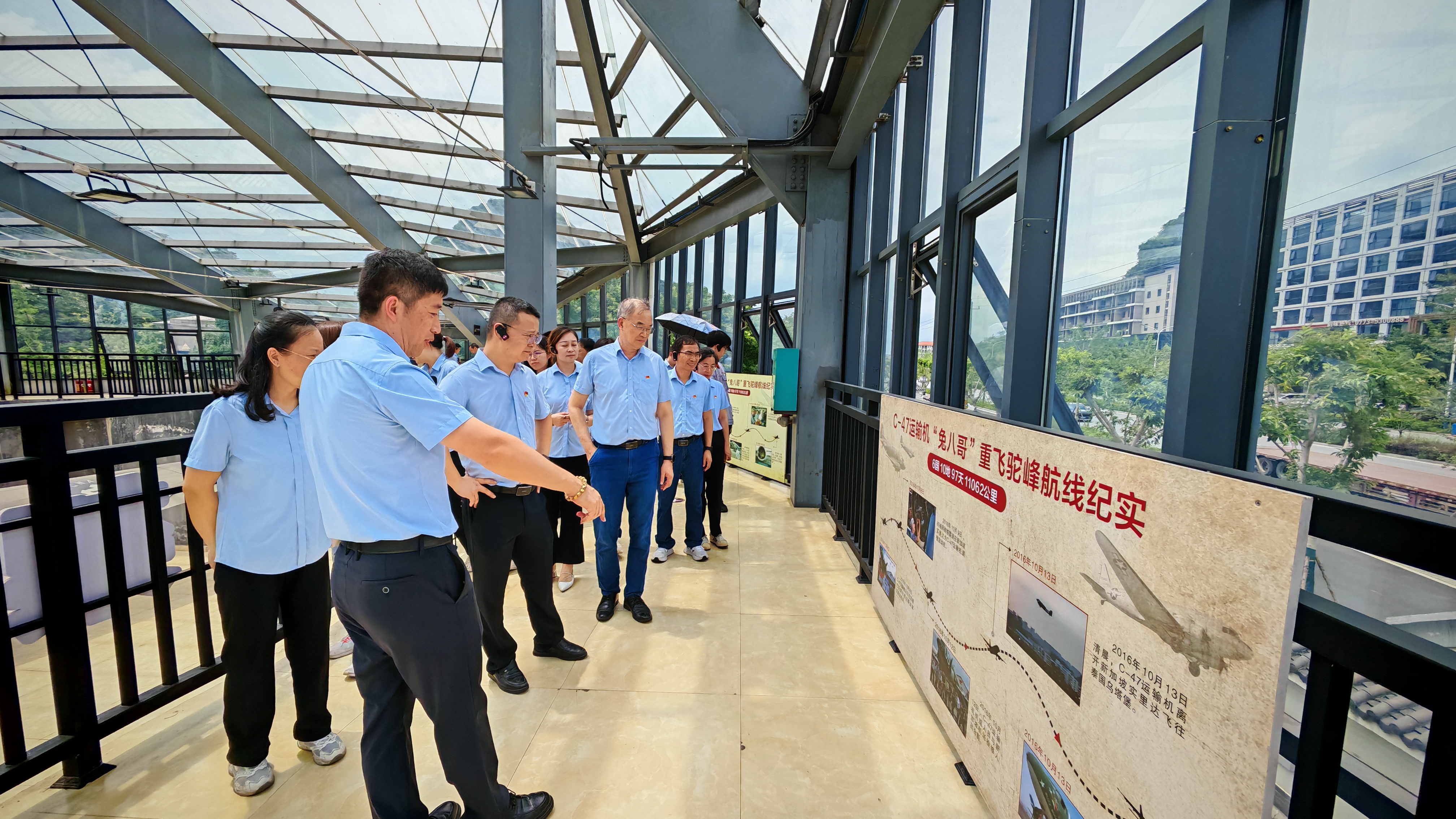 活动中,党员们怀着崇敬的心情,认真观摩了飞虎队纪念馆内陈列的作战遗物、历史照片等珍贵史料,并在飞机馆瞻仰了曾翱翔于抗战烽火的C-47运输机。一件件实物、一幅幅影像,无声诉说着那段血与火的岁月,让同志们身临其境地感受到飞虎队将士们临危不惧、视死如归、勇往直前的英雄气概。